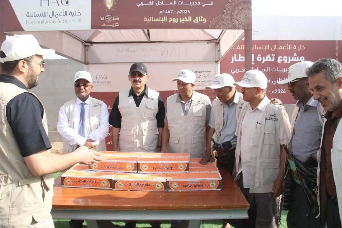 #إعلام_الحديدة دشنت السلطة المحلية بمحافظة الحديدة، مشروع "تمرة إفطار"المقدمة من خلية الأعمال الإنسانية في المقاومة الوطنية، والذي يستهدف المديريات المحررة في المحافظة للعام 2026م/1447هـ، برعاية عضو مجلس
