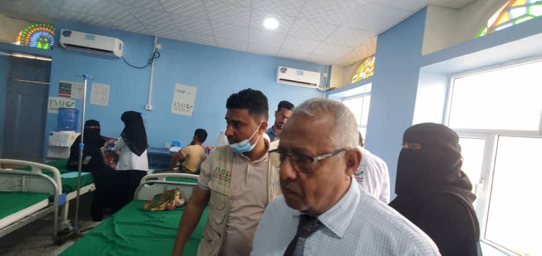 #إعلام_حيسقام مدير عام مديرية حيس مطهر القاضي، ومعه وفد من منظمة الأمم المتحدة لتنسيق الشؤون الإنسانية (الأوتشا)، اليوم، بزيارة ميدانية إلى مستشفى حيس الريفي، للإطّلاع على سير العمل في قسم الحميات المخصص للأطفال